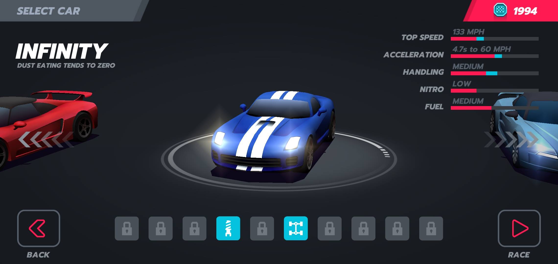Andando avanti nelle competizioni e ottenendo punti, potremo sbloccare altri veicoli che si aggiungeranno al nostro garage (in totale, sono poco più di una trentina e spaziano dalle super car che ricordano le Ferrari e le Lamborghini, per passare a modelli più raffinati, vicini alle BMW, ai camioncini Hippy e altro).