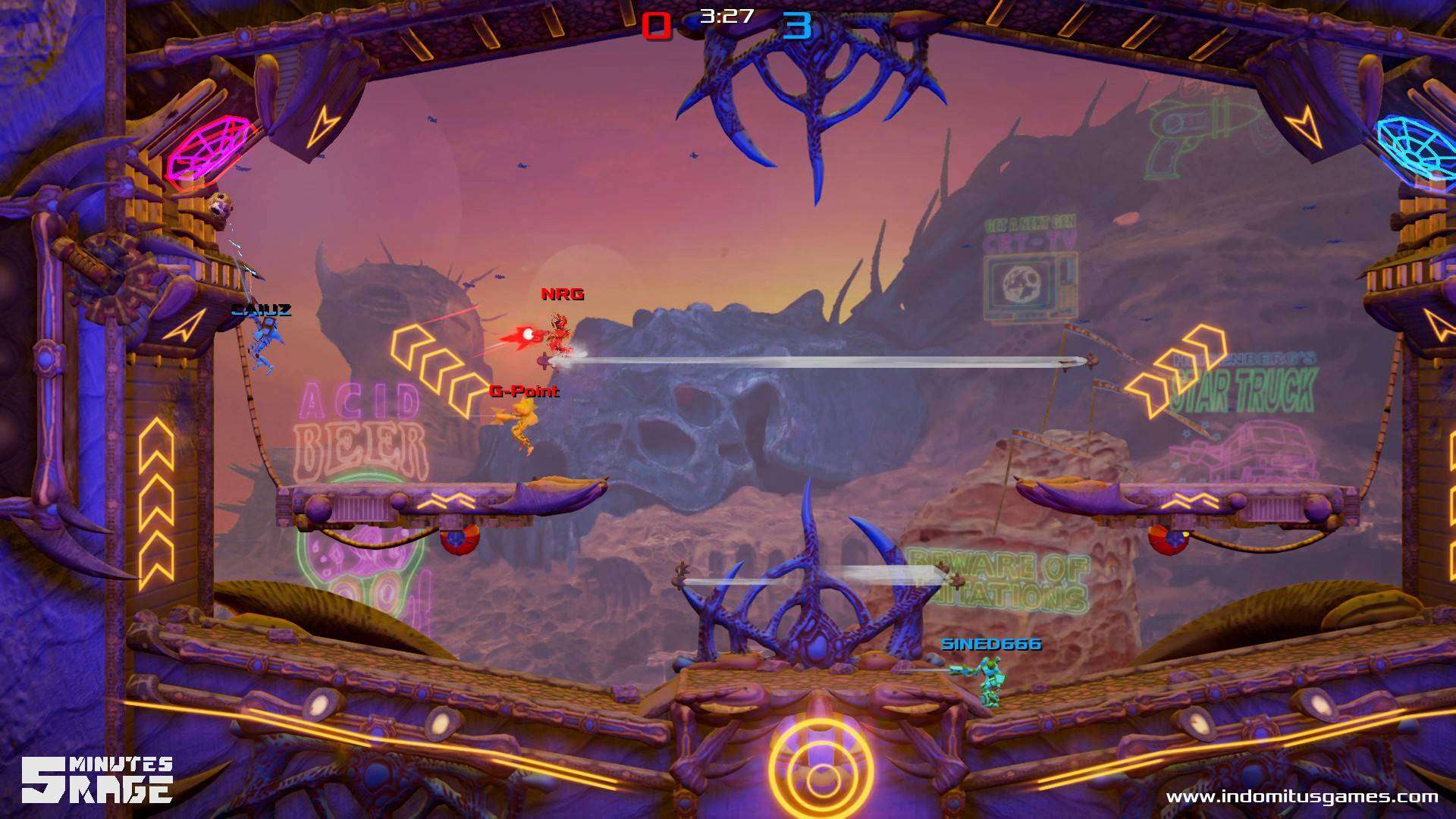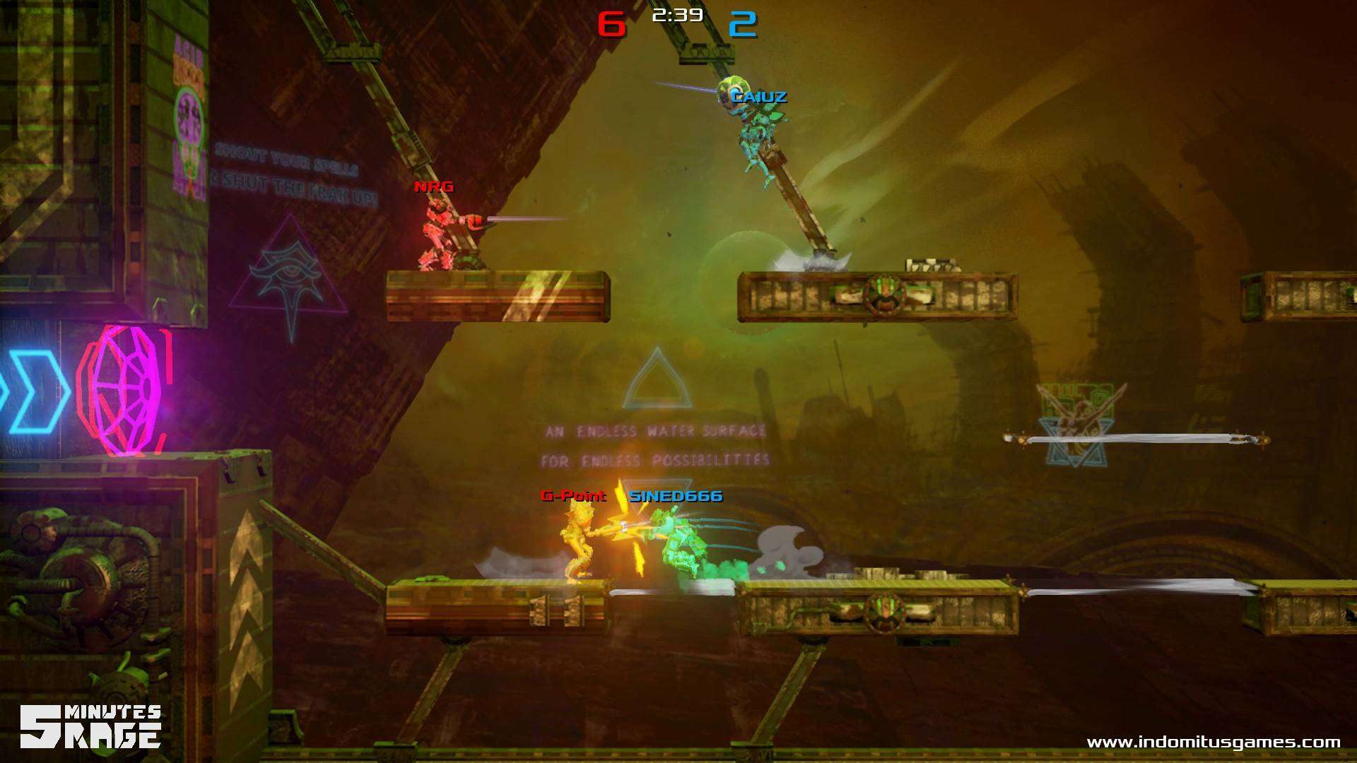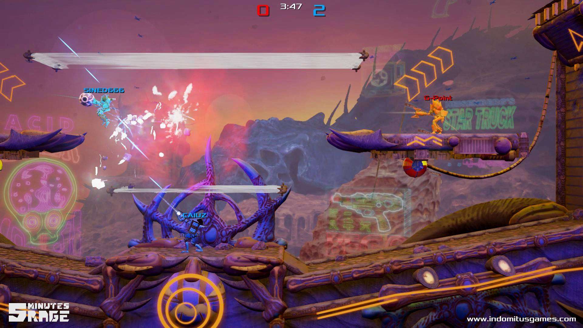 “Con 5 Minutes Rage ci siamo posti posti come obiettivo di creare un gioco ibrido che mescolasse le migliori feature dei ‘couch games’ e degli eSports – dichiara Denis Gualtieri, CEO di Indomitus Games – il gioco è diretto e divertente ma al contempo in grado di permettere al giocatore di sviluppare skill e tattiche differenti, come avviene nei giochi Nintendo che più ci hanno influenzato, Super Smash Bros e Super Mario Strikers”.