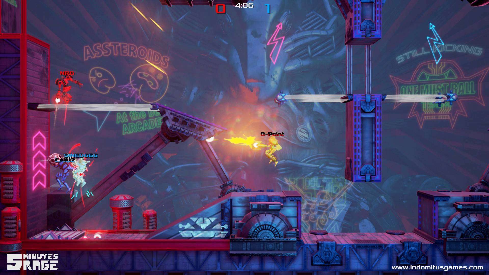Sviluppato, come detto, da Indomitus Games, gi autori dell’interessante In Verbis Virtus (un’innovativa avventura fantasy con controlli vocali basata sull’Unreal Engine), 5 Minutes Rage è un gioco multiplayer adrenalinico in cui due squadre di robot (junkbot) si scontrano a suon di cannonate per fare gol nella porta avversaria. Le regole sono semplici: scatenate la rabbia, distruggete gli avversari, prendete la palla e segnate.