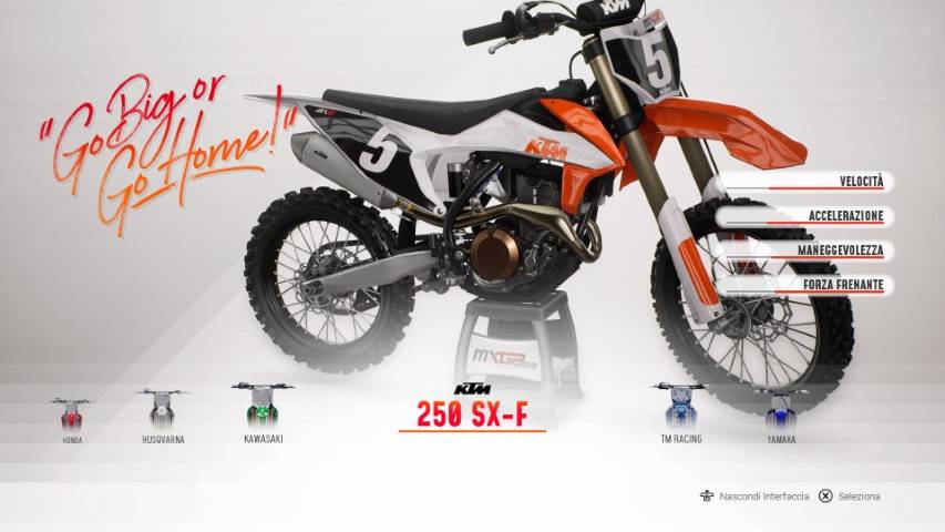 Esattamente come in Monster Energy 2, dovremo poi selezionare una moto tra quelle disponibili, con Yamaha, KTM, Honda a farla da padroni. Non siamo ancora scesi in pista, ma notiamo subito l’altissimo dettaglio e la cura riproposta nella riproduzione di ogni moto, con tantissimi particolari fedelmente riprodotti.