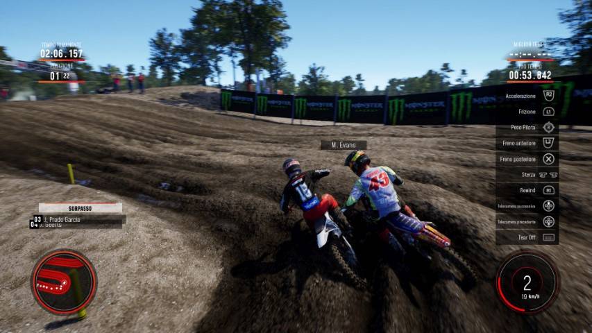 Da lì, verremo immediatamente introdotti alla gara senza nessun tutorial o allenamento, scelta che abbiamo trovato discutibile. In Monster Energy 2, le fasi iniziali della partita erano guidate, e questo aiutava tanto nell’immersione quanto nell’apprendere i comandi.