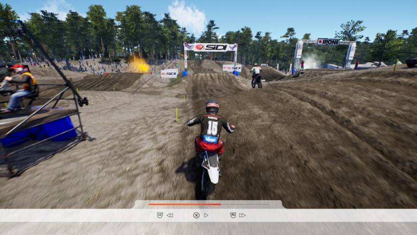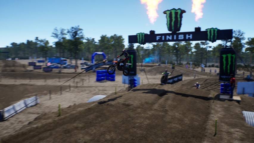 Sul nastro di partenza, non c’è più il video introduttivo identico per tutti i tracciati di Monster Energy 2, sostituito da una breve sequenza che vede il nostro pilota aggiustarsi il casco e prepararsi al via.