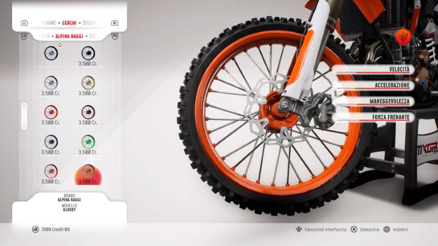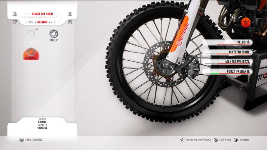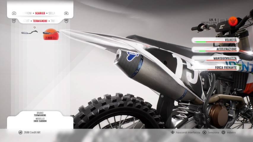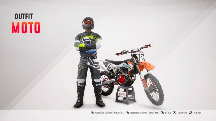 Finita la gara, a seconda della posizione guadagneremo punti esperienza e moneta sonante, che ci consentirà di andare a personalizzare la moto in profondità, garantendo prestazioni superiori nelle tornate successive. Il menu di personalizzazione e di acquisto della componentistica è la riproposizione del menu di Monster Energy 2, ovviamente rivisto e riadattato per questa nuova iterazione. Anche in questo caso, i dettagli si sprecano e vanno a coprire praticamente tutto, dai cerchi ai cavi dei freni, e tutto il vestiario relativo al pilota, occhialini compresi.